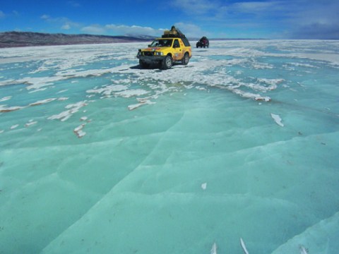 In Yong’s hotel room, we hunched over his laptop to look at slides from his trip. There were photos of his SUV crashing through the ice; of someone pouring hot water from a teakettle to defrost the engine’s water tank; of Tibetan herders who offered Yong and his colleagues meat and milk along the way.